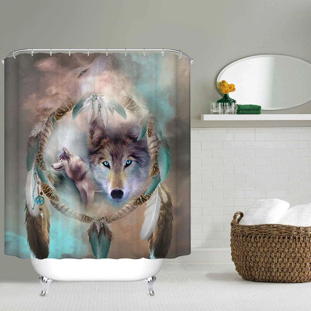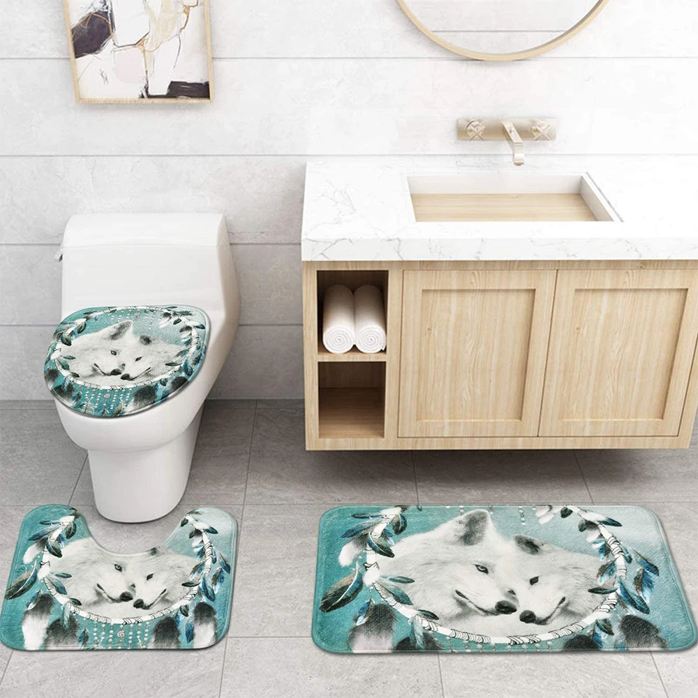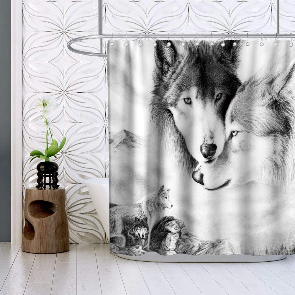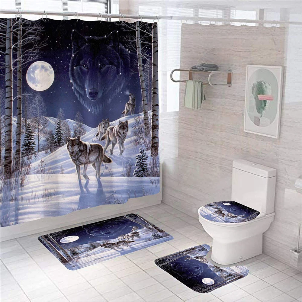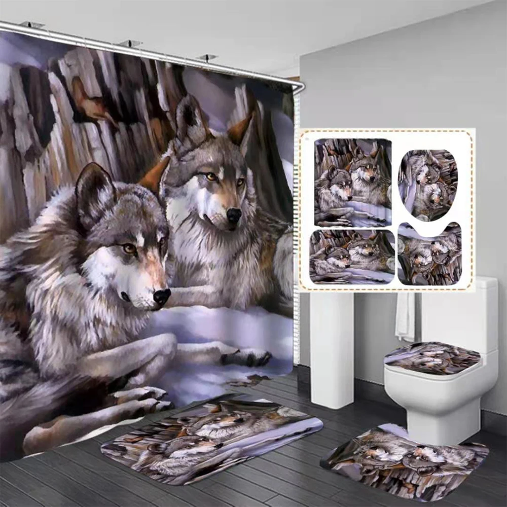 Шторы для душа с рисунком волка в скандинавском стиле, 4 шт.