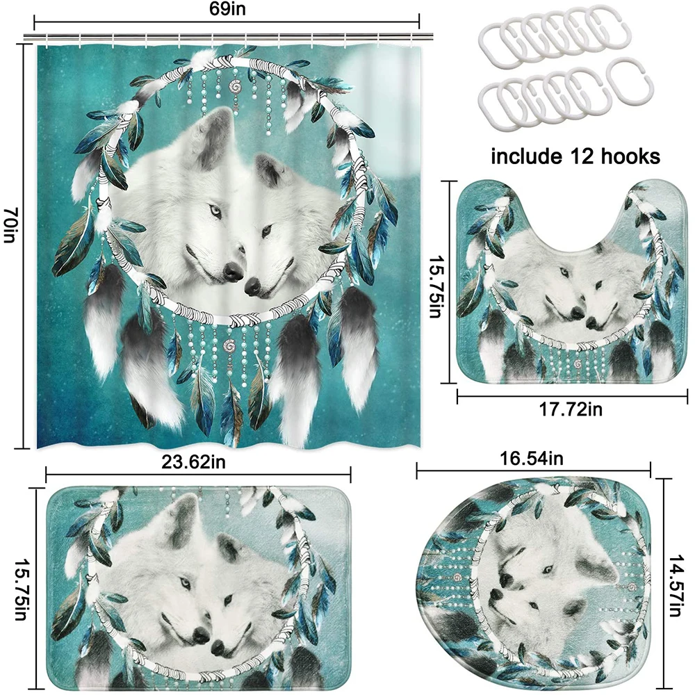 Partern: дикий Северный волкМатериал штор: полиэстерМатериал коврика: бархатная ткань + поливинилхлорид(ПВХ) Сетчатое дноХарактеристики: водонепроницаемый, мягкий и прочныйИспользование: украшение для дома и отеляПосылка включает в себя:1 занавеска для душа + 12 пластиковых крючков Очень мягкая ткань высокой плотности, удобная, Экологичная, хорошая вентиляция.