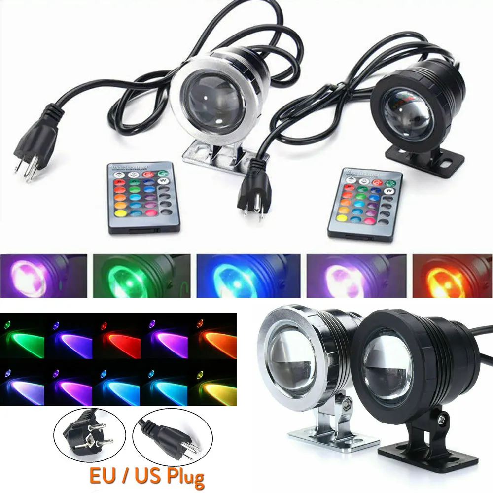 Подводный RGB-светильник для аквариума, 10 Вт, 15 Вт, светодиодный прожектор, наружный водонепроницаемый точесветильник ильник для фонтана, бассейна, пруда, вилка стандарта СШАЕС