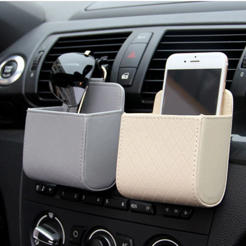 Коробка-органайзер в автомобиль сумка воздуховод приборная панель висячая кожаная коробка Универсальный Автомобильный держатель для мобильного телефона в салоне автомобиля аксессуары