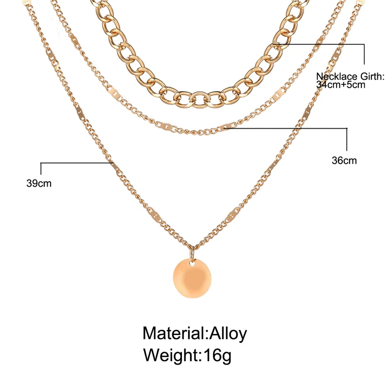 Kissme золото Цвет круглый металлический кулон-табличка с именем ожерелья для женщин из трех многослойная цепочка панк ожерелья 2021, модная новинка, ювелирное изделие