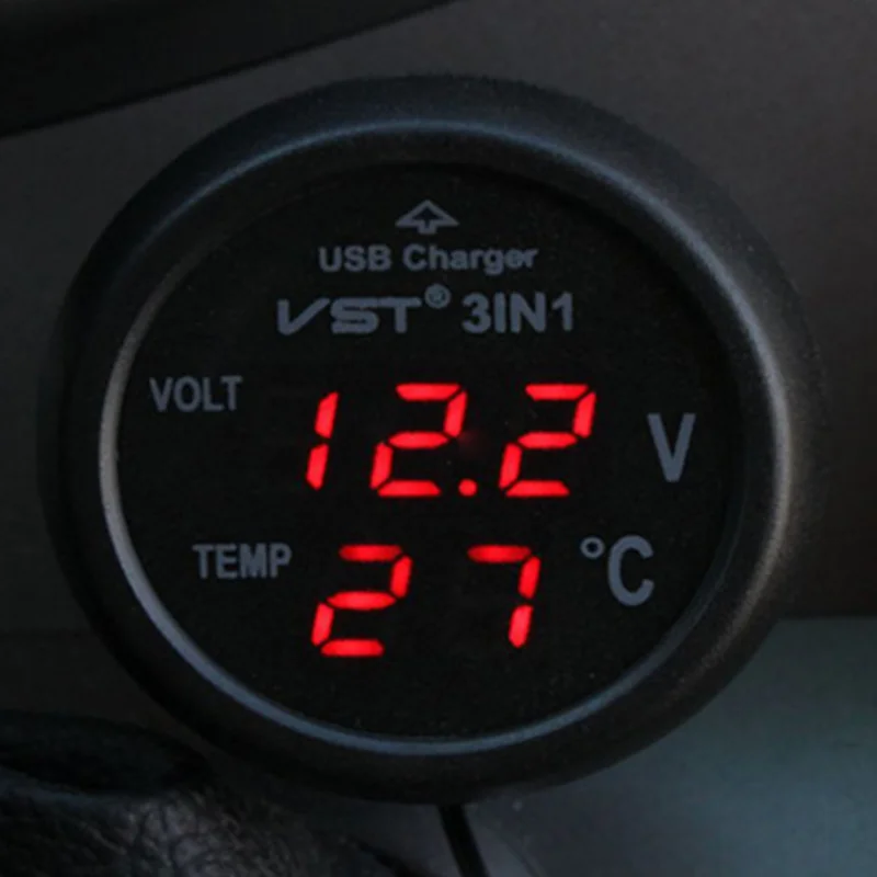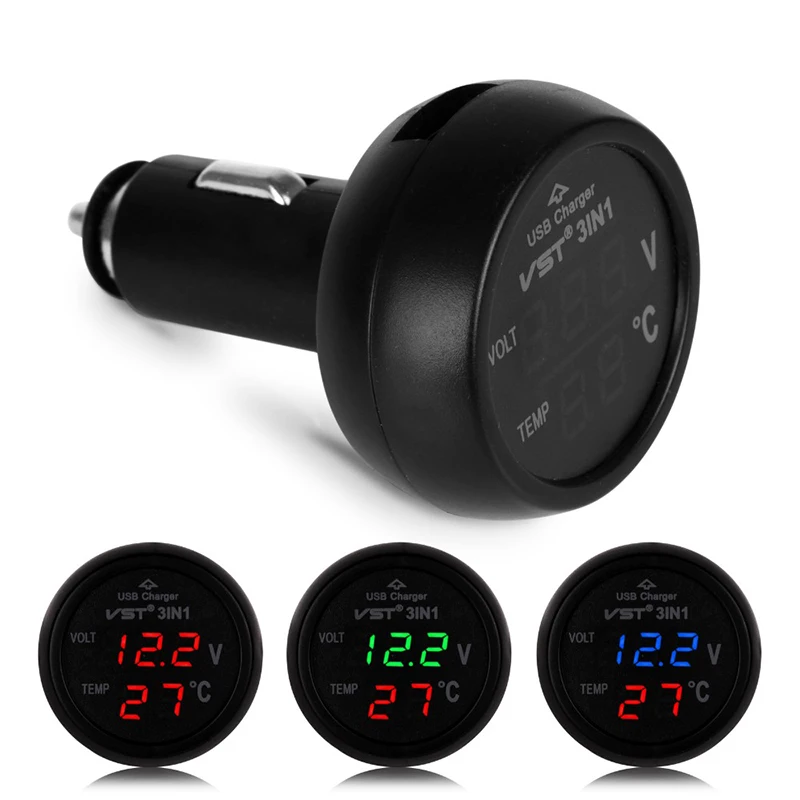 Универсальный автомобильный вольтметр 12 в 24 В Автомобильный светодиодный цифровой вольтметр датчик термометр USB зарядное устройство вольтметр гнездо прикуривателя