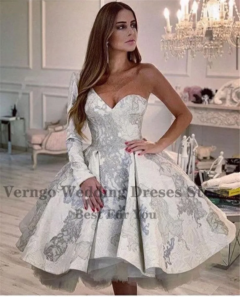 Арабское бальное платье Verngo с длинным рукавом, платье для выпускного вечера, кружевная Милая пушистая юбка с аппликацией, короткое вечернее платье для вечеринки