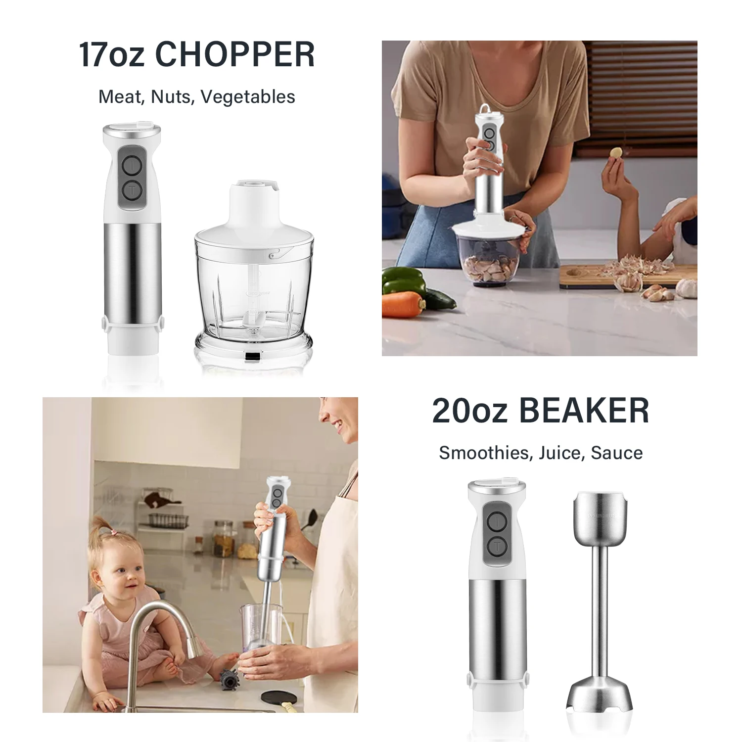 INKBIRD Кухня ручной блендер, 6-Скорость 4-в-1 блендер INK-HB01 погружения мясорубка для мяса с стакан венчик для соковыжималки