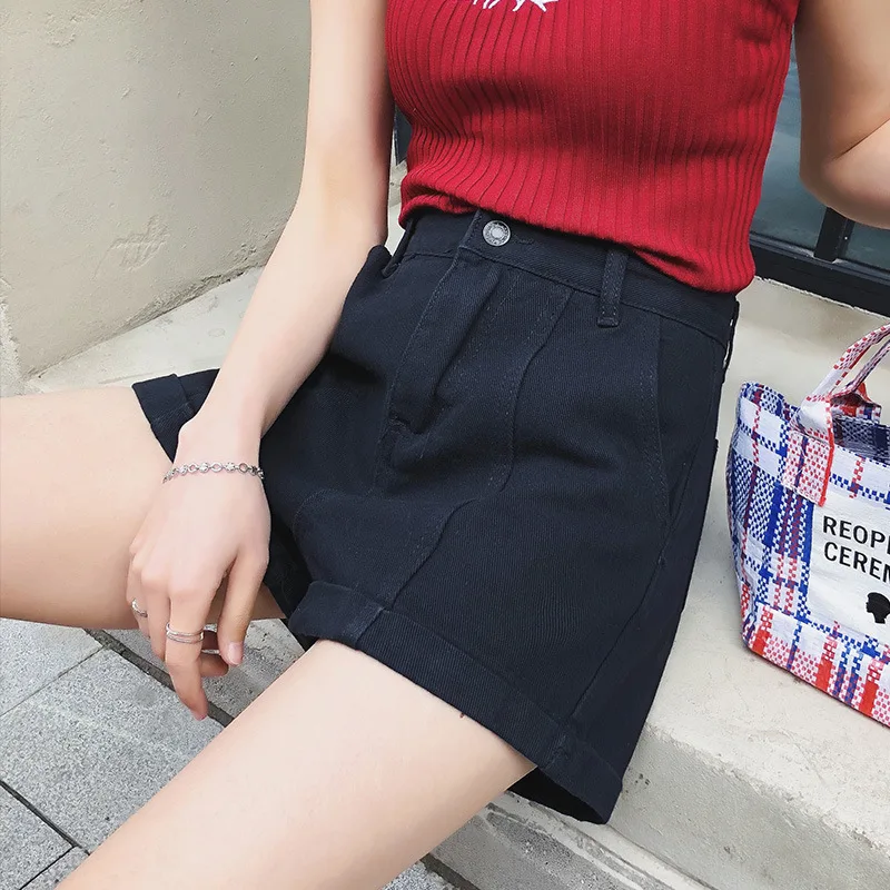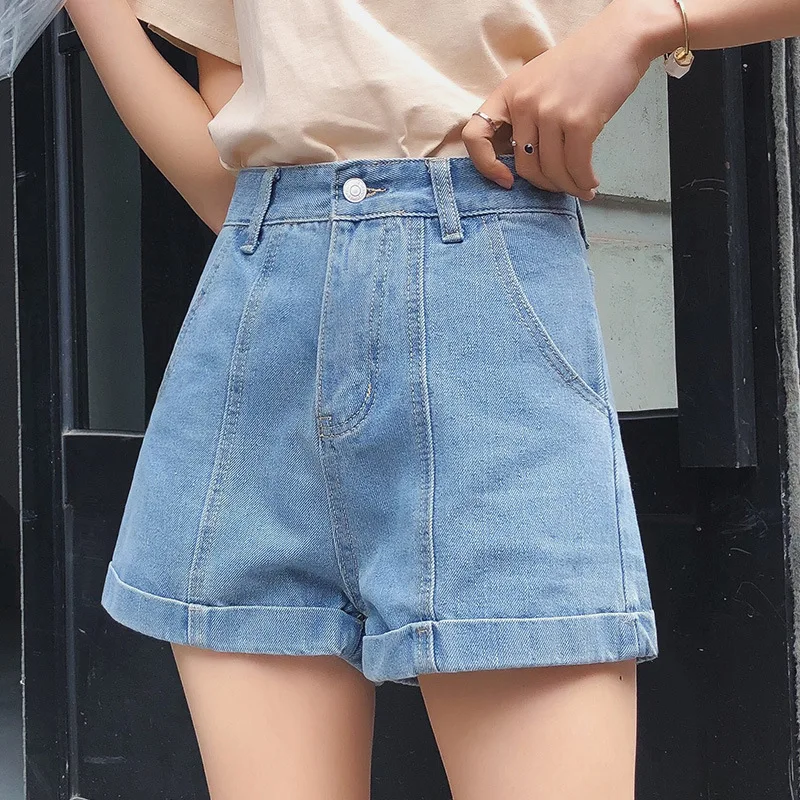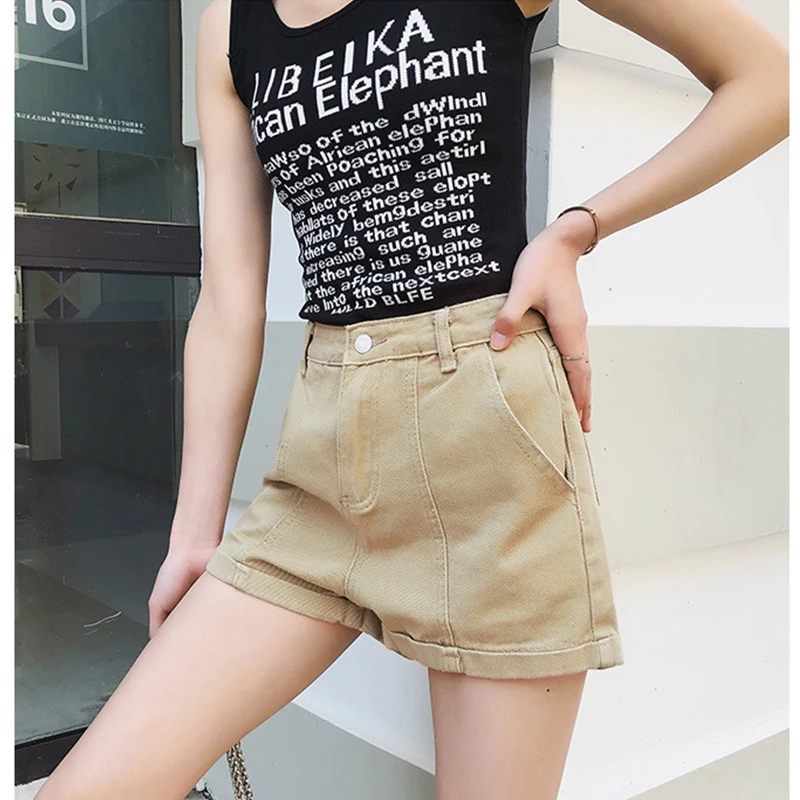 Шорты женские джинсовые с завышенной талией, повседневные свободные облегающие универсальные спортивные, с широким поясом, лето 2021