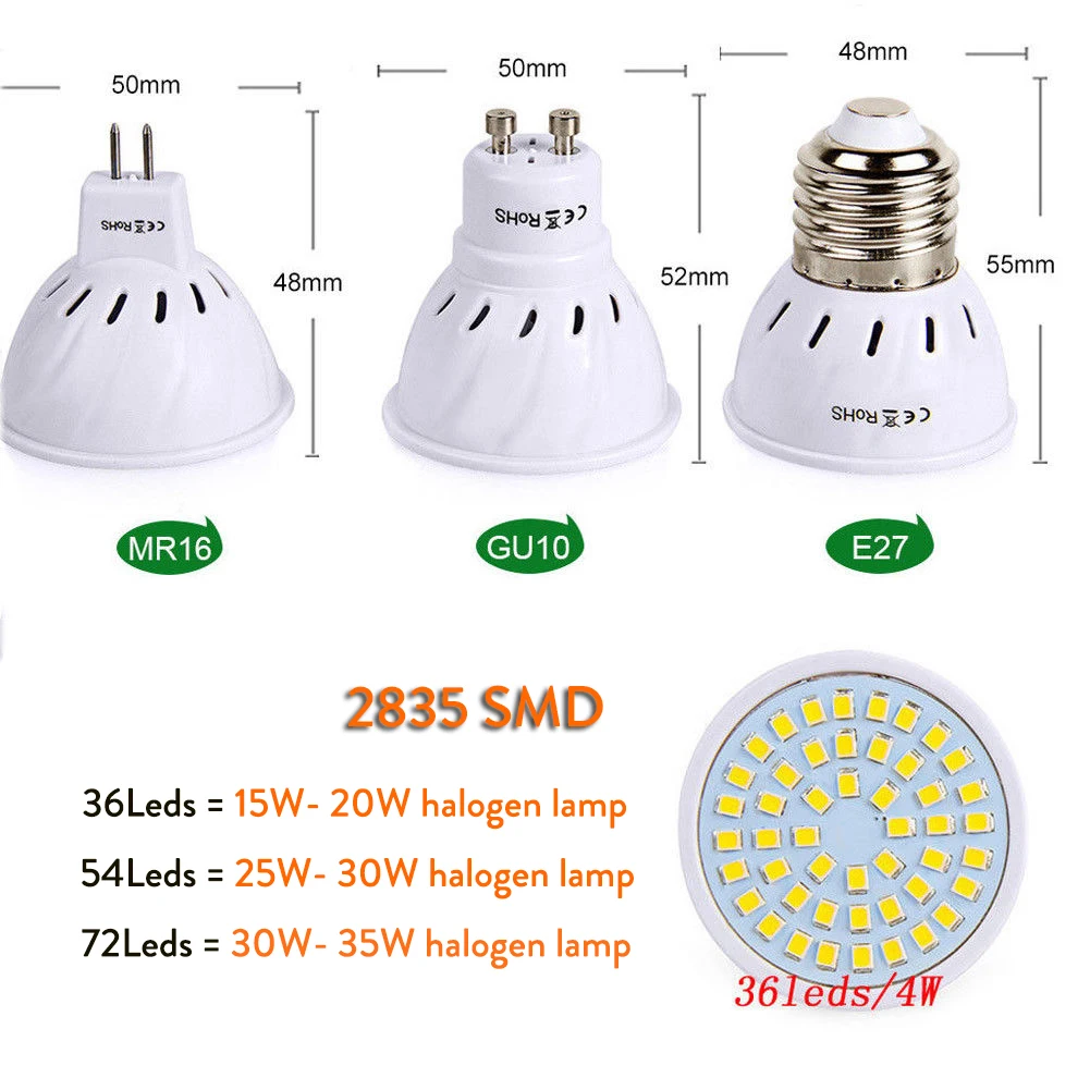 Тип цоколя: MR16 E27 GU10Напряжение: 110 В/220 ВМатериал оболочки: Прочный термостойкий огнестойкий материалМощность: 4 Вт 6 Вт 8 ВтСветодиодный чип: EpistarКоличество СВЕТОДИОДНЫЙ ных чипов: 36 54 72 светодиодныйСветовой поток: 480-880 лмCRI: >80Угол свечения: 120 °Срок службы: 50000 часовСертификаты: CE, ROHSЦвет светильник: теплый белый (3000-3500K); Холодный белый (6000-6500K)