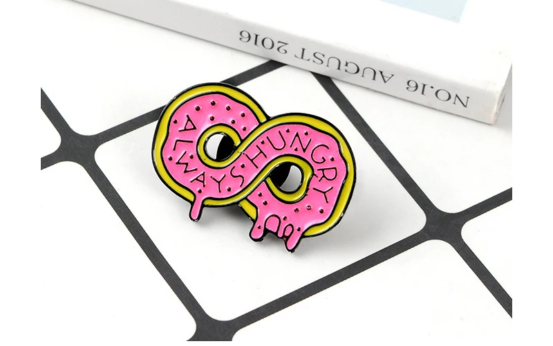 Розовый пончики Броши вкусные Еда эмаль на булавке на всегда Голодные сладкий и других десертов с героями мультфильмов симпатичный значок ювелирные подарки для девочек