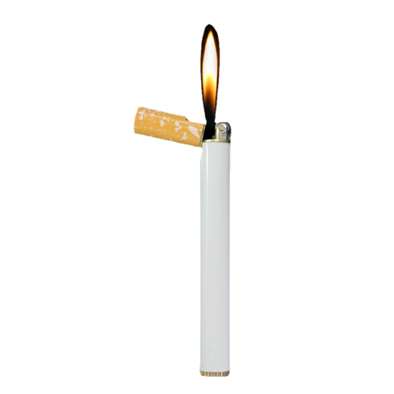 Креативные мини компактные зажигалки, металлические бутановые газовые зажигалки в форме сигареты, свободные огнеупорные шлифовальные колесные карманные зажигалки