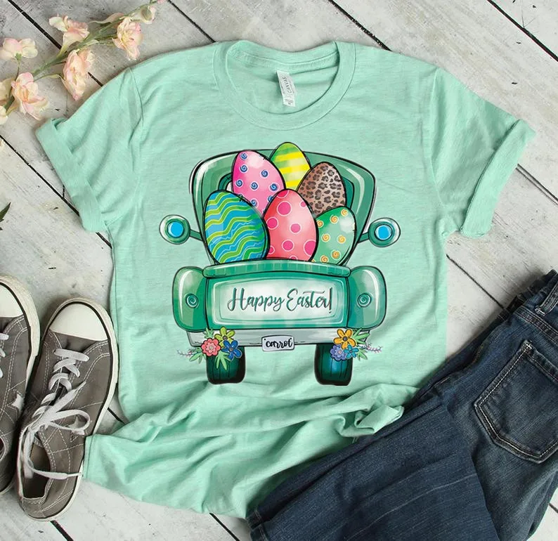 Счастливой Пасхи женские яйца и надписью майка для женщин 100% хлопок, свободный покрой, забавные уличная размера плюс для Леди Топ для девочек Футболка Прямая поставка в стиле Харадзюку