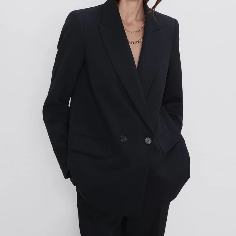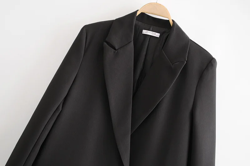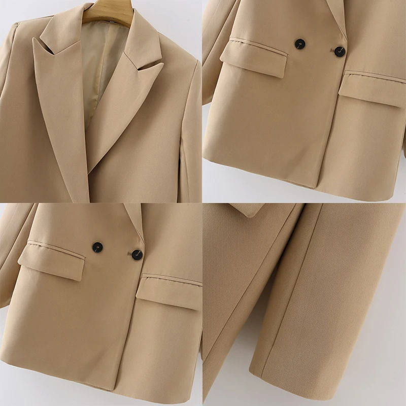 Женский костюм, Блейзер, куртка, пальто, свободная повседневная двубортная офисная верхняя одежда с длинным рукавом, винтажная однотонная Корейская верхняя одежда