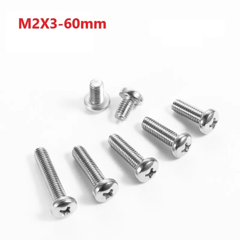 Винты с полукруглой головкой, 2 мм, нержавеющая сталь 304, M2 x 3, 4, 5, 6, 8, 10, 12, 14, 16, 18, 20, 22, 25, 40, 45, 50, 60 мм