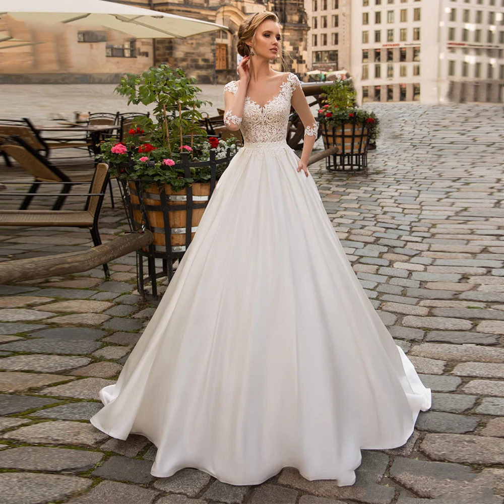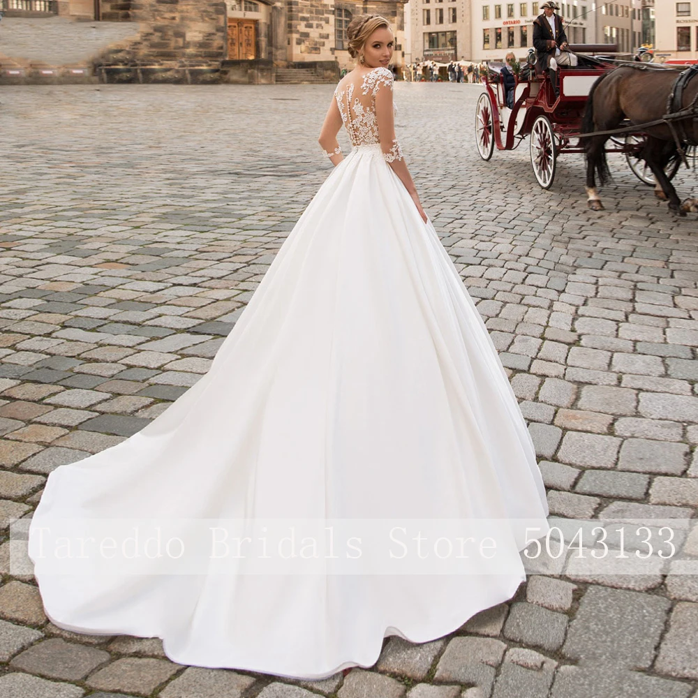 Сексуальное кружевное Свадебное платье с V-образным вырезом и аппликацией рукава три четверти 2021 прозрачные длинные тюлевые Свадебные платья на пуговицах сзади плать