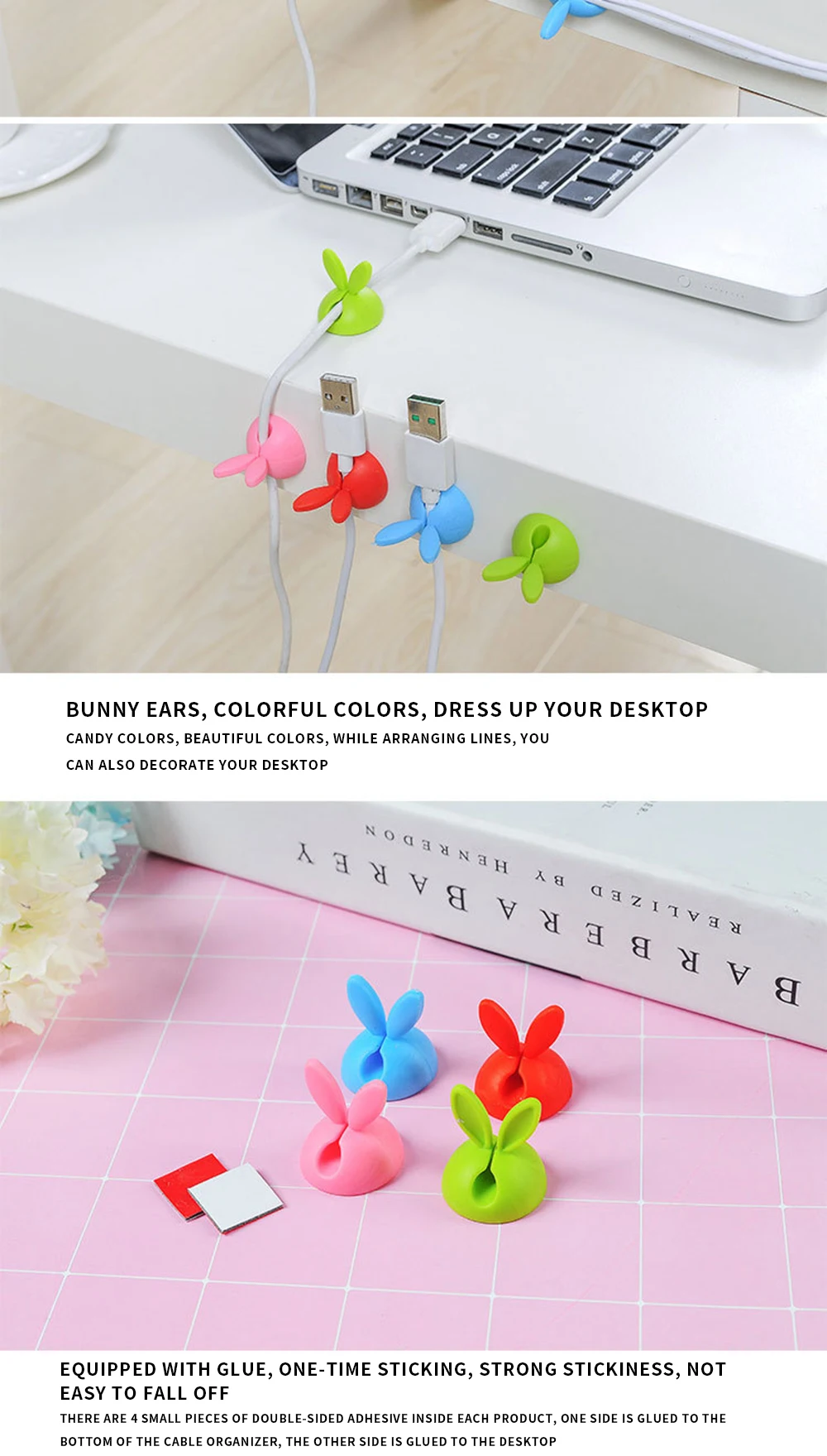 4 шт. милые с заячьими ушками держатель кабеля управления Клип вискоза намотки проволоки протектор для кабеля наушников Органайзер Рабочий стол аккуратно розовый