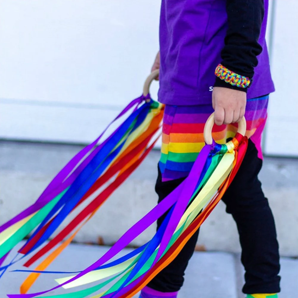 Деревянная круглая Радужная лента, кольцо, погремушка, ручной воздушный змей, игрушки, Детский развивающий распознавание слуха, сенсорный подарок на день рождения, Монтессори