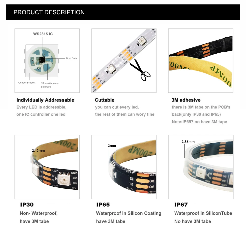 2. Тип IC: улучшенная версия ws2815 IC (встроенный светодиод 5050 smd rgb)