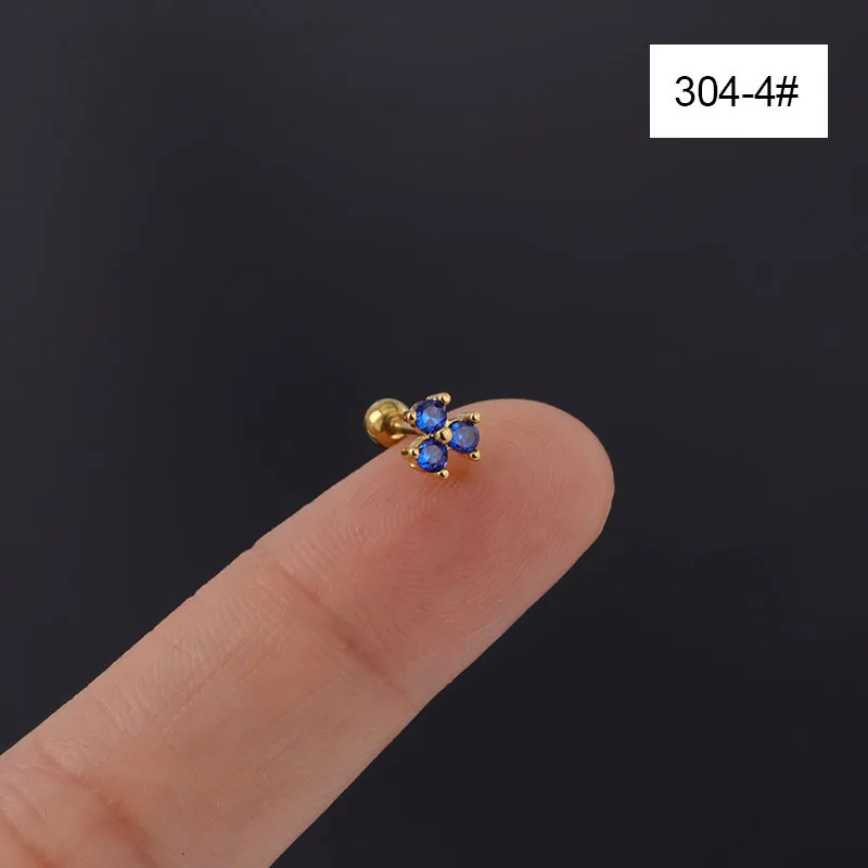 Серьга-гвоздик из нержавеющей стали с фианитом для пирсинга, Ювелирное Украшение для прокола уха, Козелка, внутренней хрящевой складки ушной раковины, 20 г, 1 шт.