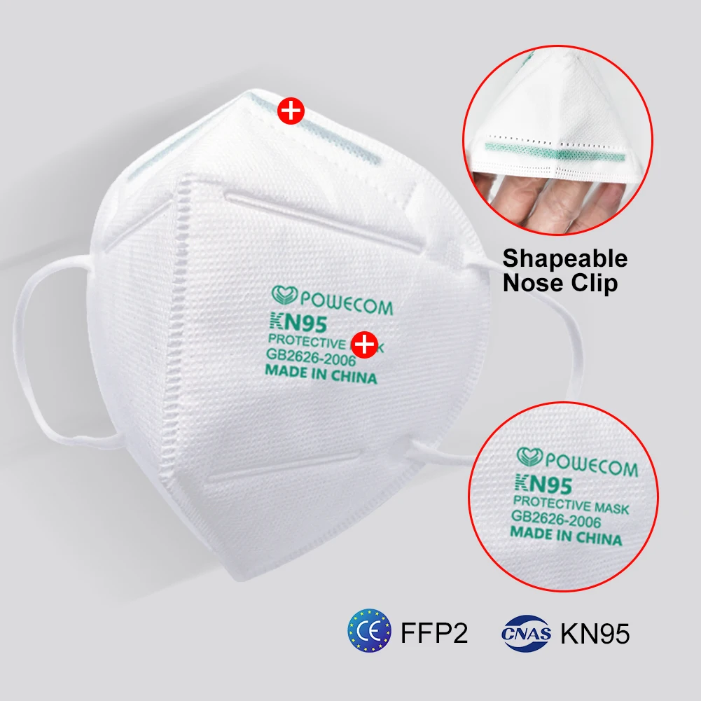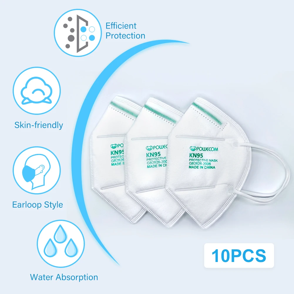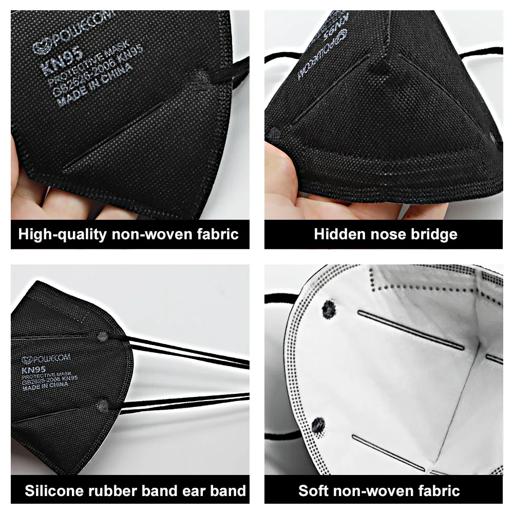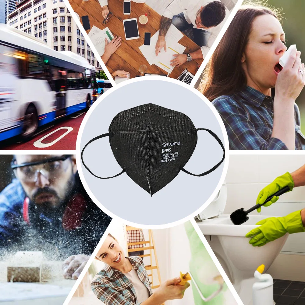 Многоразовая маска POWECOM KN95, маски для лица, Защитная черная маска KN95 с 5-слойным фильтром, защитные пылезащитные маски для взрослых, белая маска
