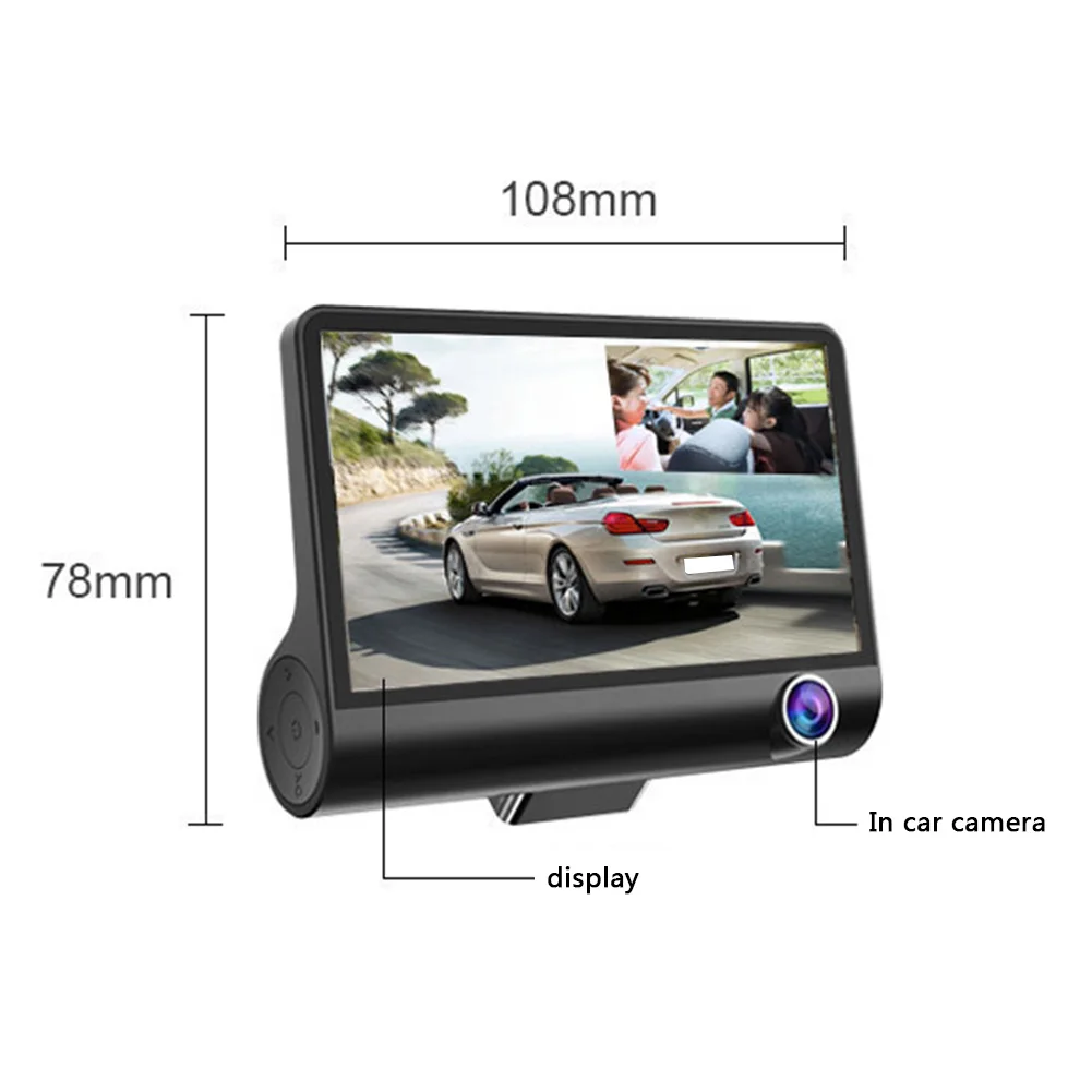1080P Dash Cam 4 дюйма Дисплей Двойной объектив Видеорегистраторы для автомобилей Широкий формат приборной панели Камера с зеркалом заднего вида Камера