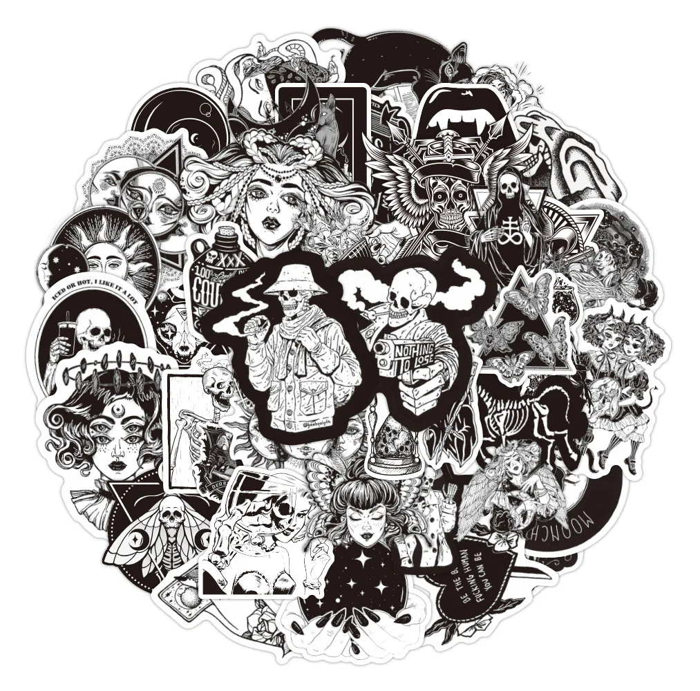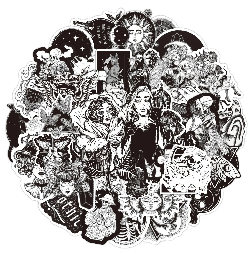 Стикеры черно-белые водостойкие в готическом стиле, 103050 шт.