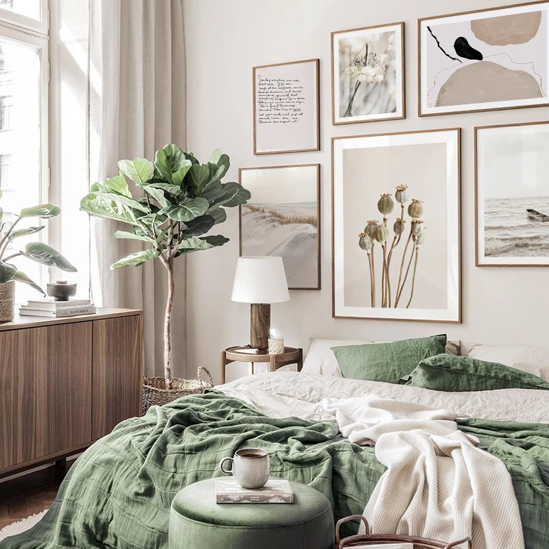 Картина на холсте в скандинавском стиле с изображением листьев раст...