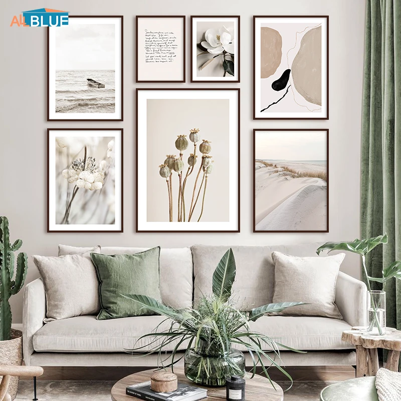 Абстрактное бежевое пустынное пляжное Бохо минималистичное настенно...