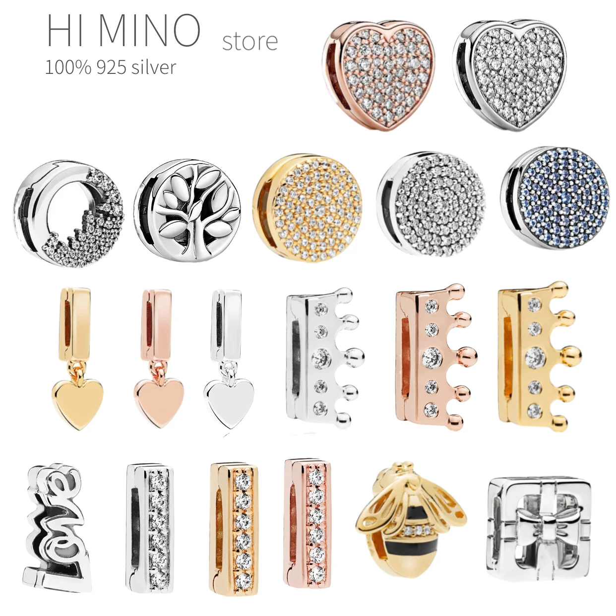 Серебряные бусины-зажимы для отражений S925, подвески, круглые хрустальные бусины, корона, сердце, луна, клевер, луна, подходят для оригинального женского браслета Pando
