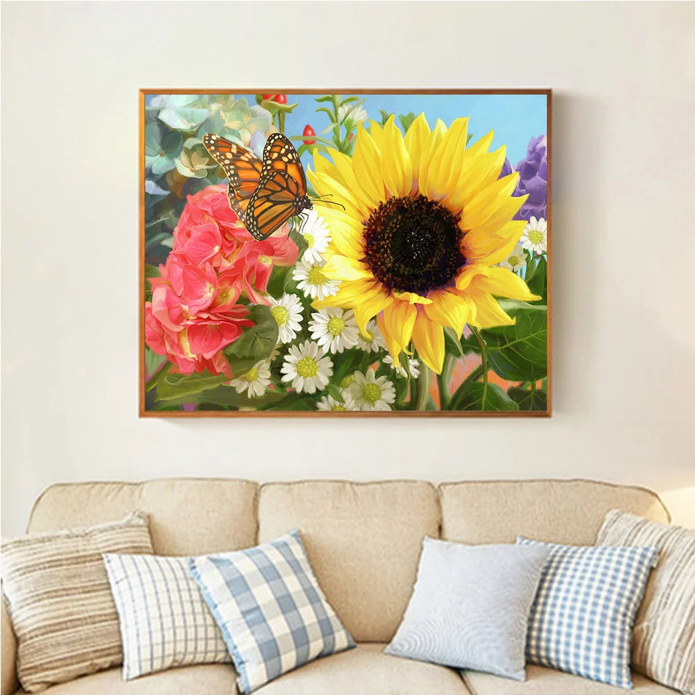 Алмазная 5D картина HUACAN с цветами, вышивка крестиком, мозаика, Весенняя Алмазная вышивка, картина из Стразы-бабочки, ручная работа