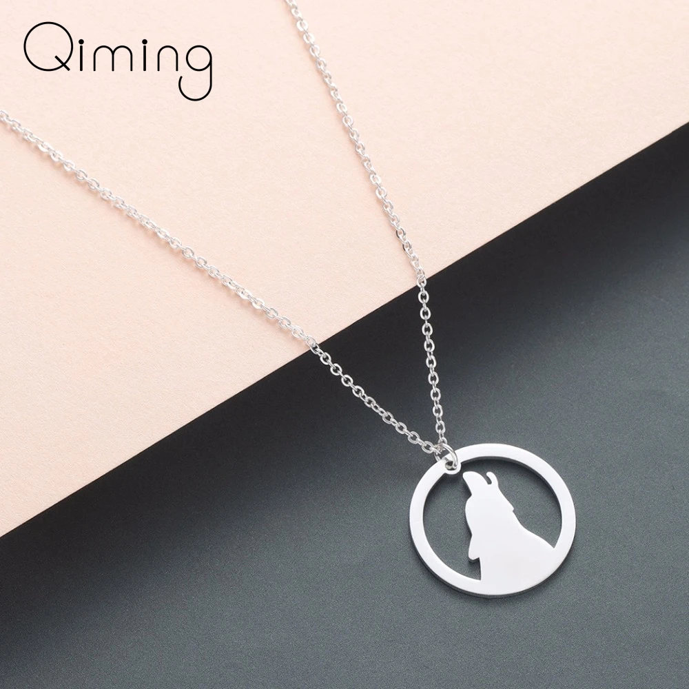 Ожерелье QIMING в стиле панк с волком для женщин и мужчин, ювелирны...