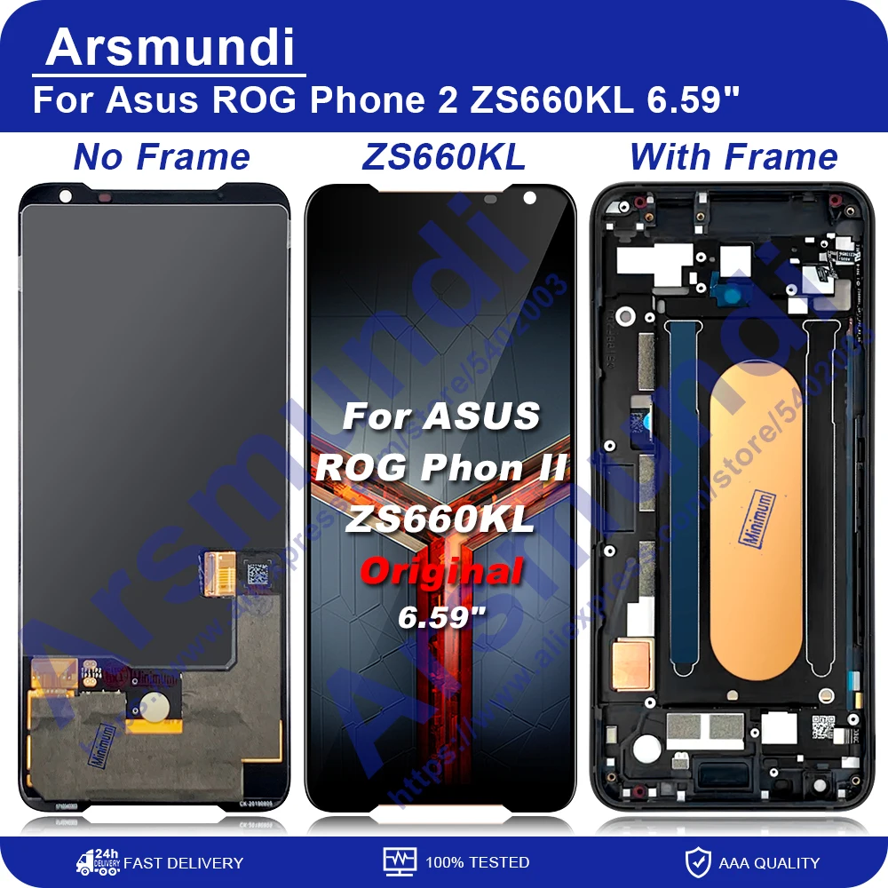 ЖК-дисплей 6,59 дюйма для ASUS ROG Phone II 2 ZS660KL AMOLED, кодирующий преобразователь сенсорного экрана в сборе Замена для Asus ZS660KL I001DA