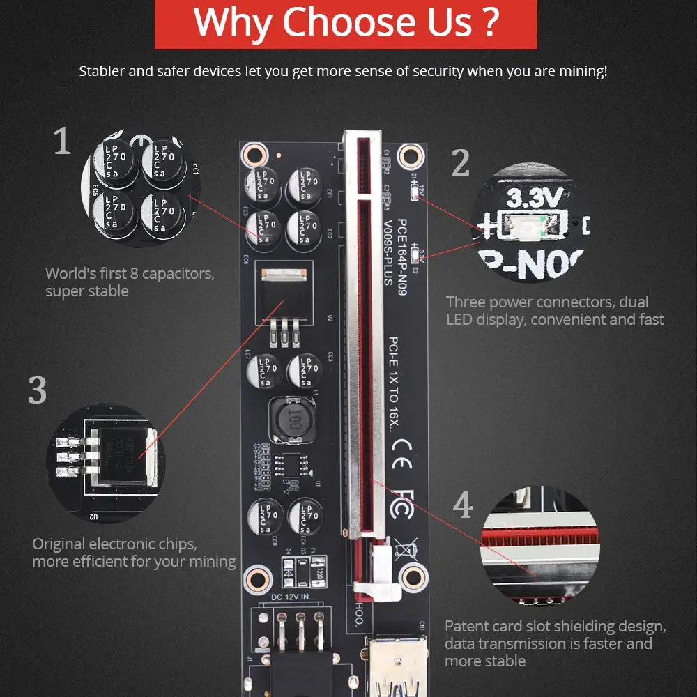 1/6/10 шт. TISHRIC PCI E PCIE Riser 009s плюс Riser x16 6Pin USB3.0 кабель майнинга биткоинов Майнер расширитель Riser карта VER009S плюс