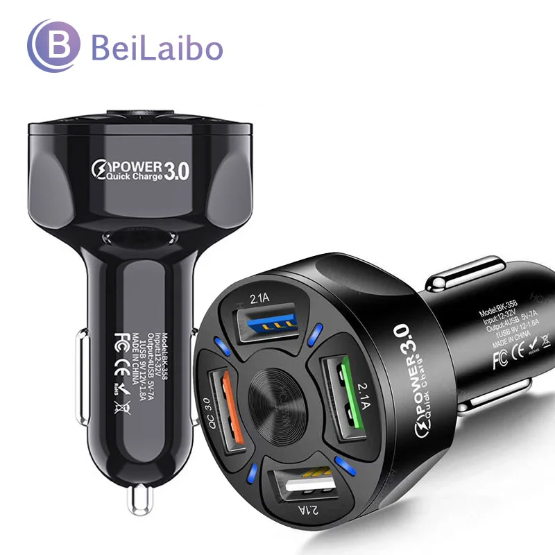 Автомобильное зарядное устройство с 4 USB-портами, быстрая зарядка ...