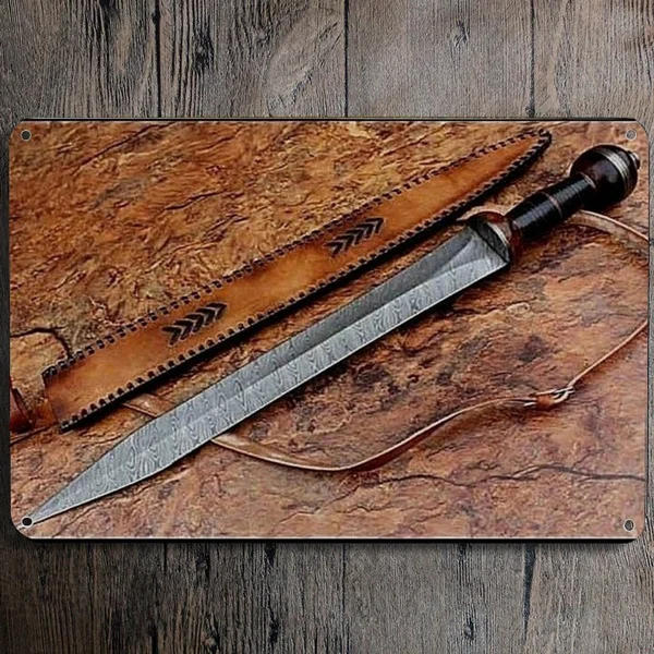 Металлический жестяной знак дамасский меч с фиксированным лезвием Гладиатор охотничий меч Кинжал