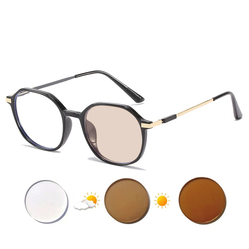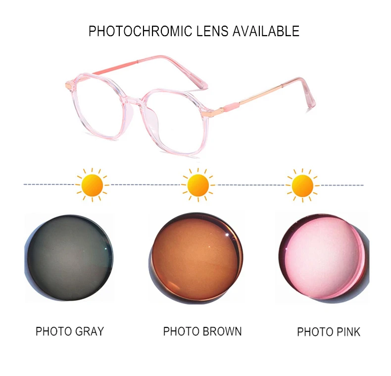 Что касается фотохромных линз, они будут прозрачными и бесцветными в помещении или в темных местах, но они изменят цвет на улице или на солнце, чтобы защитить ваши глаза от сильного светильник.