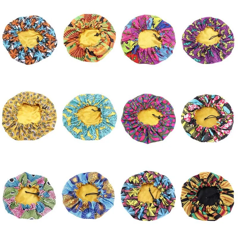 Новая детская атласная ночная Кепка с Африканским батиком двойная круглая Кепка эластичная Регулируемая шапка с кнопками для спа дома гостиницы парикмахерской