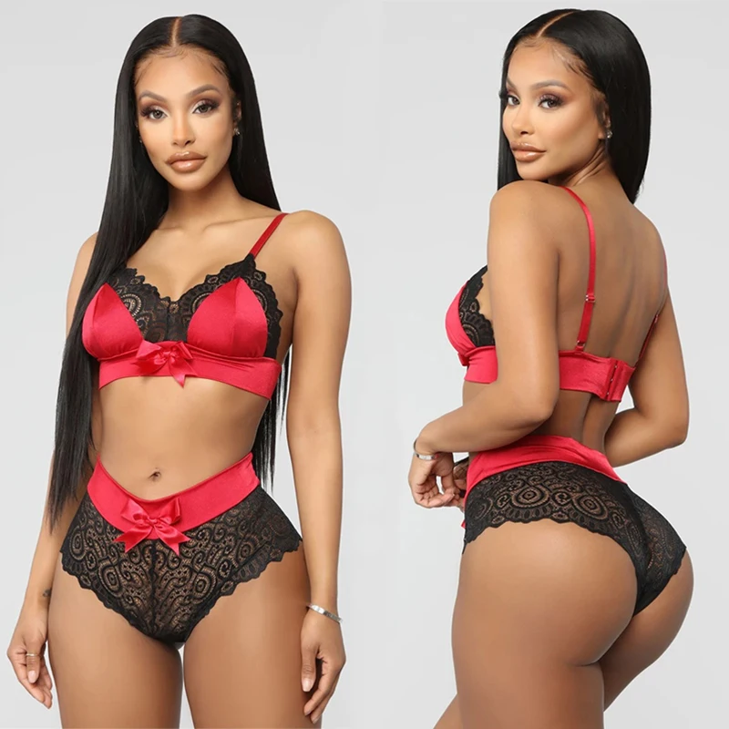 Комплект сексуального нижнего белья из 2 предметов, прозрачная Пижама, женский сексуальный корсет, кружевная Экзотическая одежда, популярный эротический комплект женского нижнего белья с красным бантом