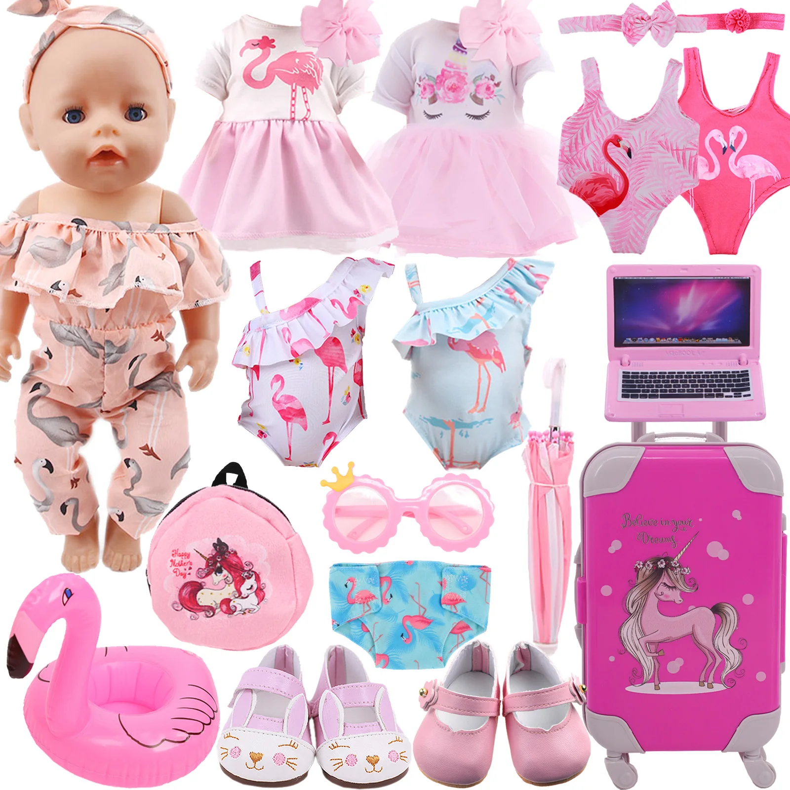 Одежда для кукол, платье с фламинго, обувь, аксессуары для детей 43 см, 18 дюймов, американская и 43 см, кукла-Реборн, игрушка для девочек