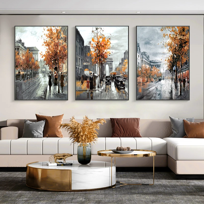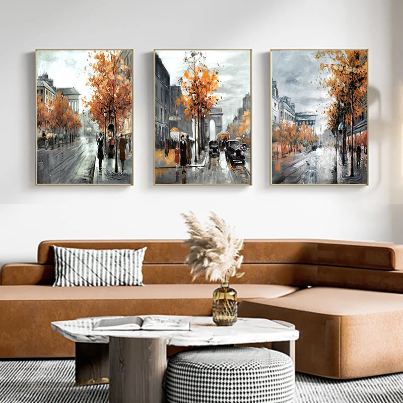 Винтажный постер ландшафта Лондона, пейзаж оранжевого дерева, холст, картина маслом, ретро настенный принт, украшение для гостиной, картина