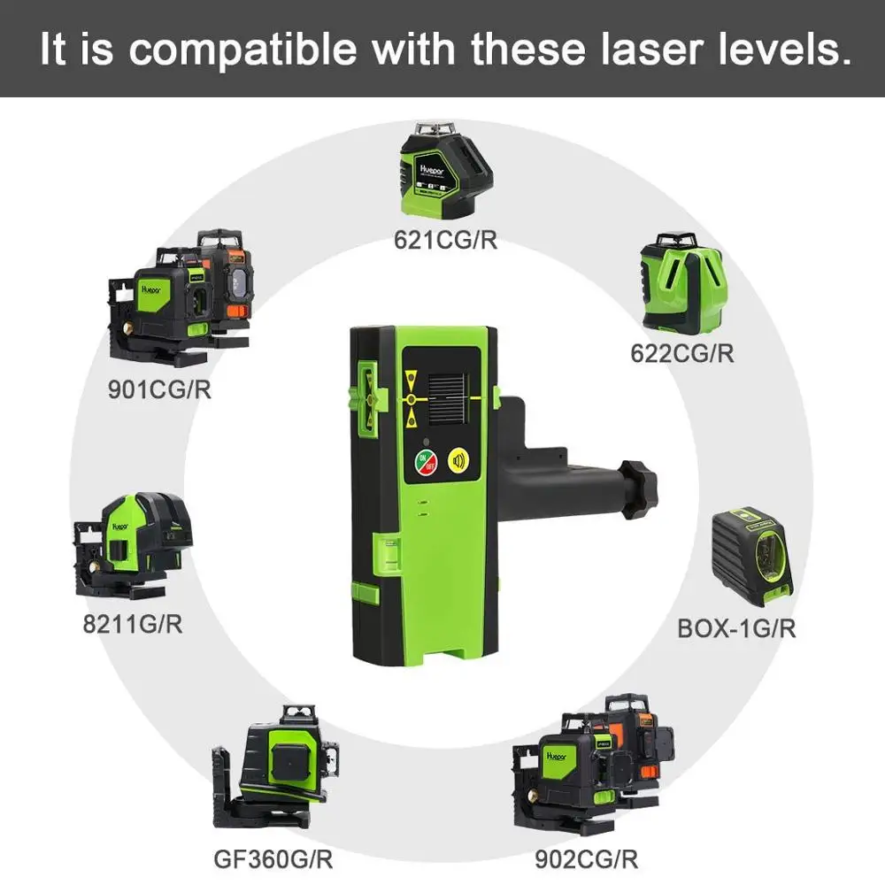 Цифровой лазерный приемник Huepar с ЖК-дисплеем, уличный режим, лазерный детектор, обнаружение пульса, красный и зеленый луч, лазерный уровень с зажимом