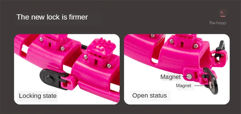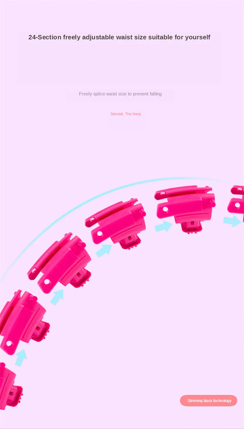 Обруч может быть составлен из секций, которые могут увеличить или уменьшить количество слайдов на основной части тела для регулировки размера талии.