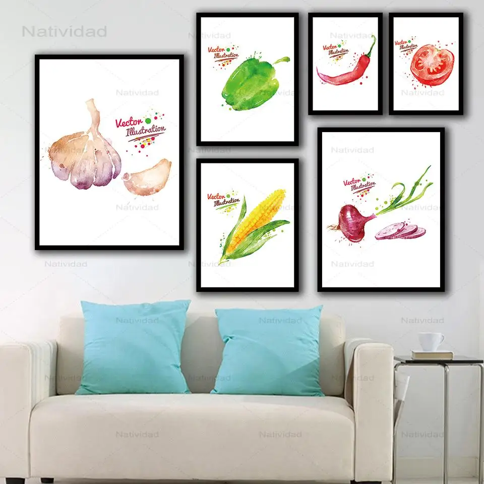 Плакат на холсте, акварель, овощи, настенная живопись, Скандинавский минималистский стиль, для ресторана, для кухни, домашнего декора, модульные картины
