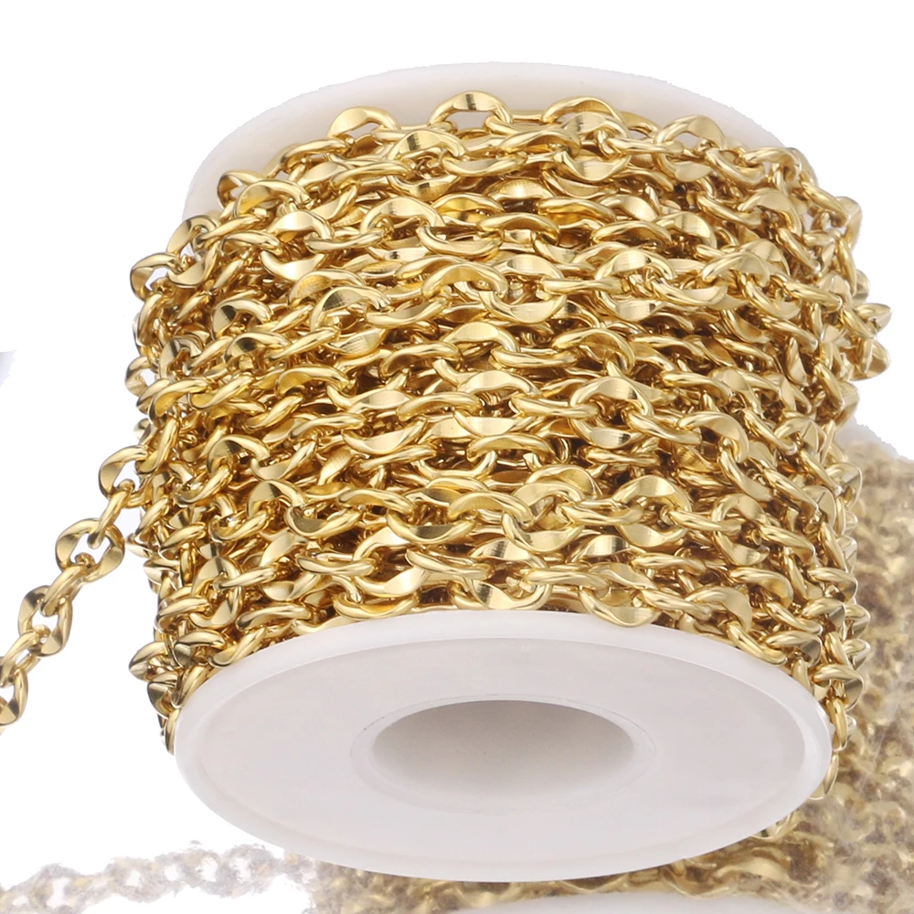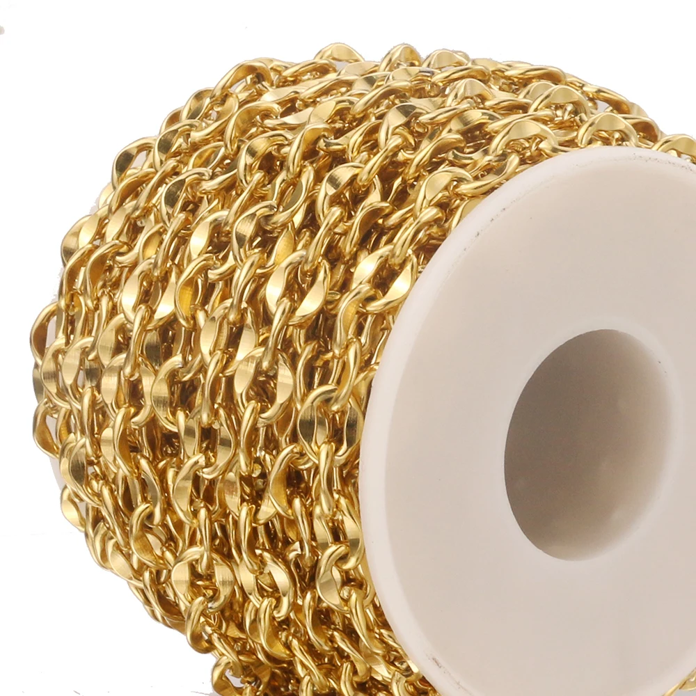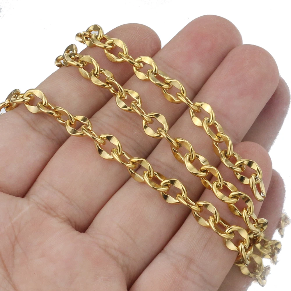 Цепочка Rolo из нержавеющей стали под золото, 1 метр, плоская проволока, шикарная цепочка с губами для изготовления браслетов, ожерелий, принадлежности для бижутерии сделай сам