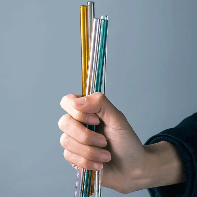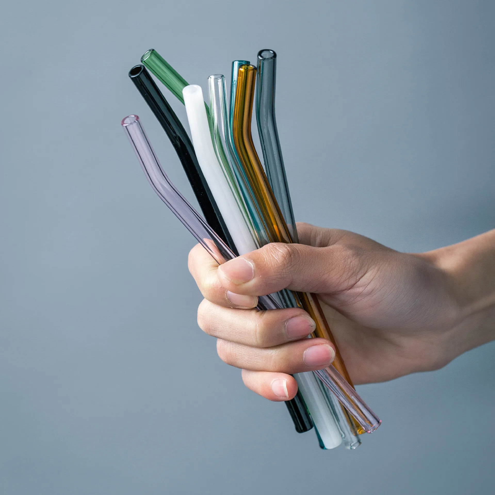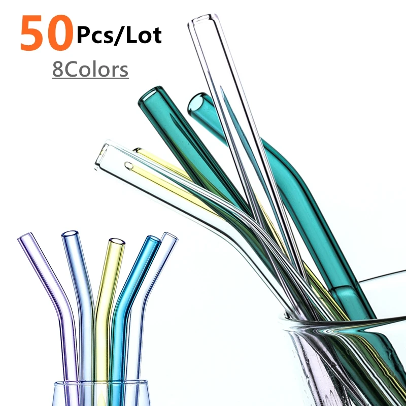 8 цветов Многоразовые Стекло трубочка трубочки для питья с чистящей щетки бар посуда вино коктейль Стекло соломинки для вечерние свадебные сувениры