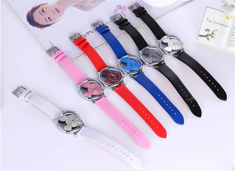 Стальные кварцевые часы с изображением Микки и Минни, Мультяшные ажурные детские часы, украшенные кристаллами, для девочек, студентов, металлические часы, декоративные часы