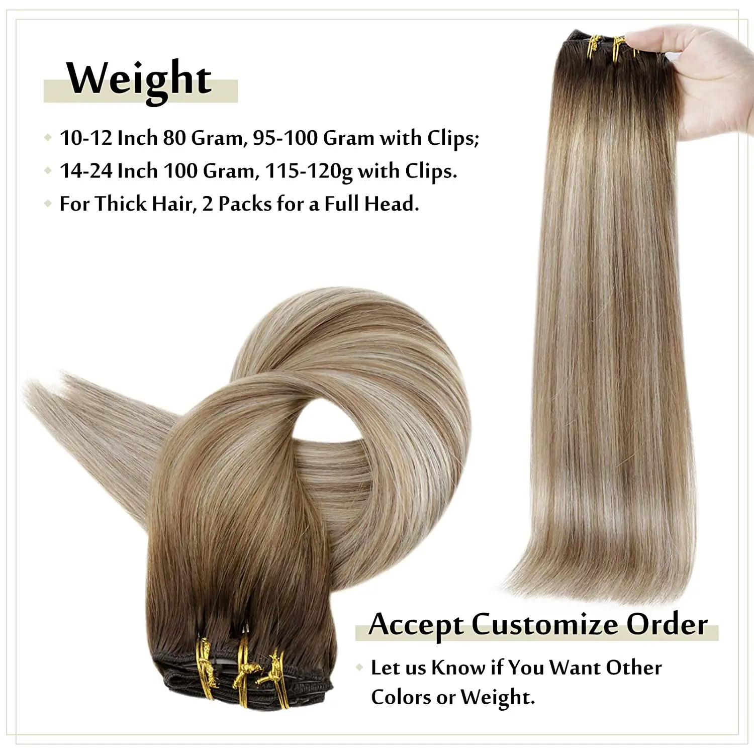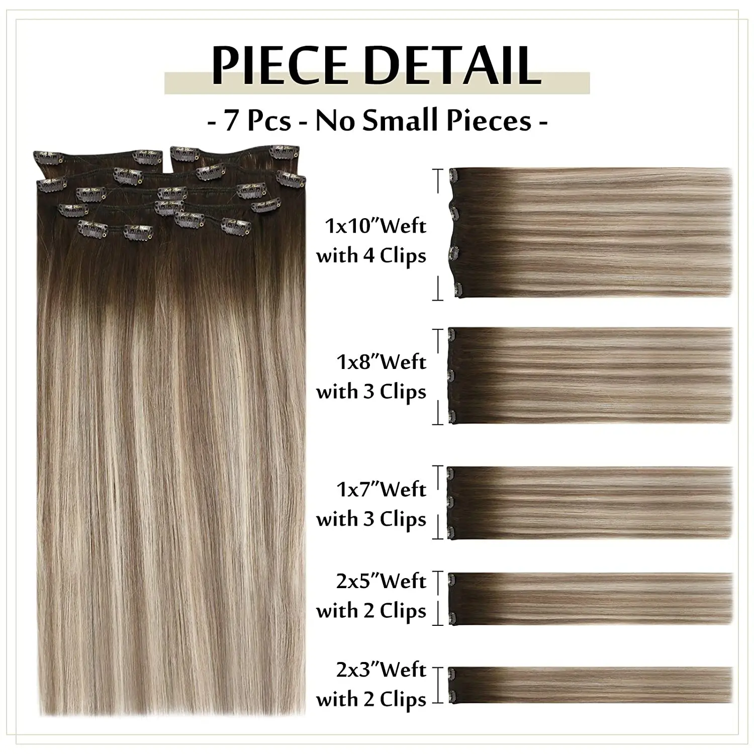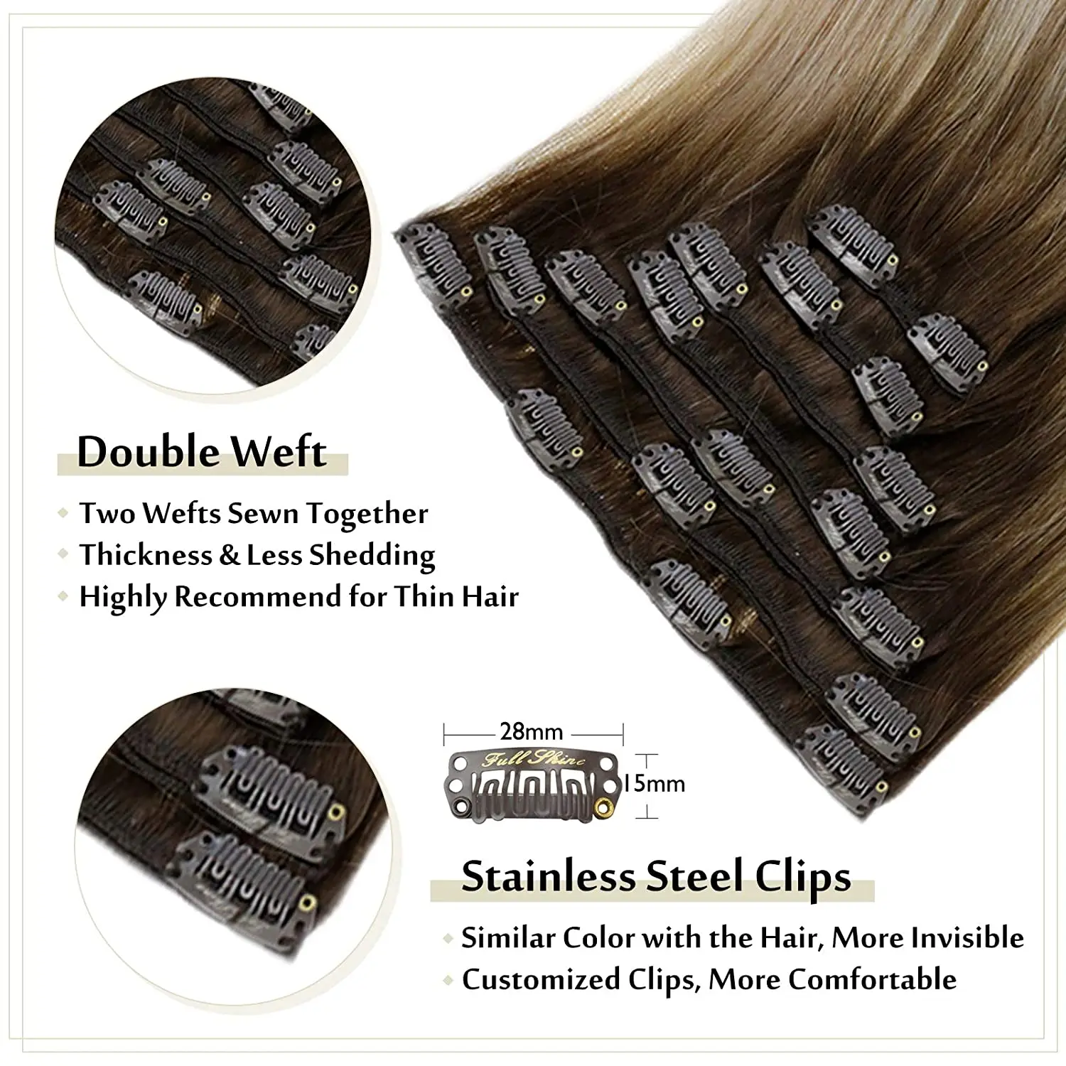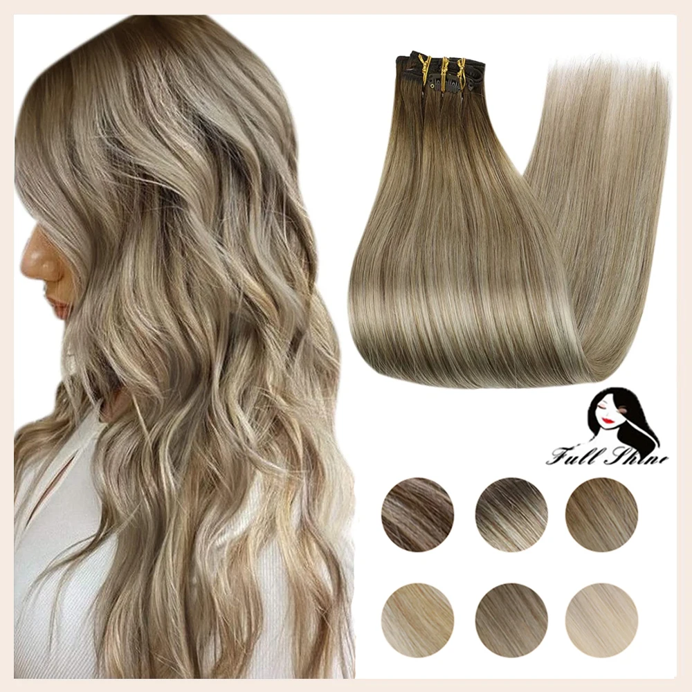 Полный блеск Омбре клип в наращивание волос 7 шт. двойной Wefted расширение блонд Омбре 100% Remy человеческие волосы для наращивания толстые волосы
