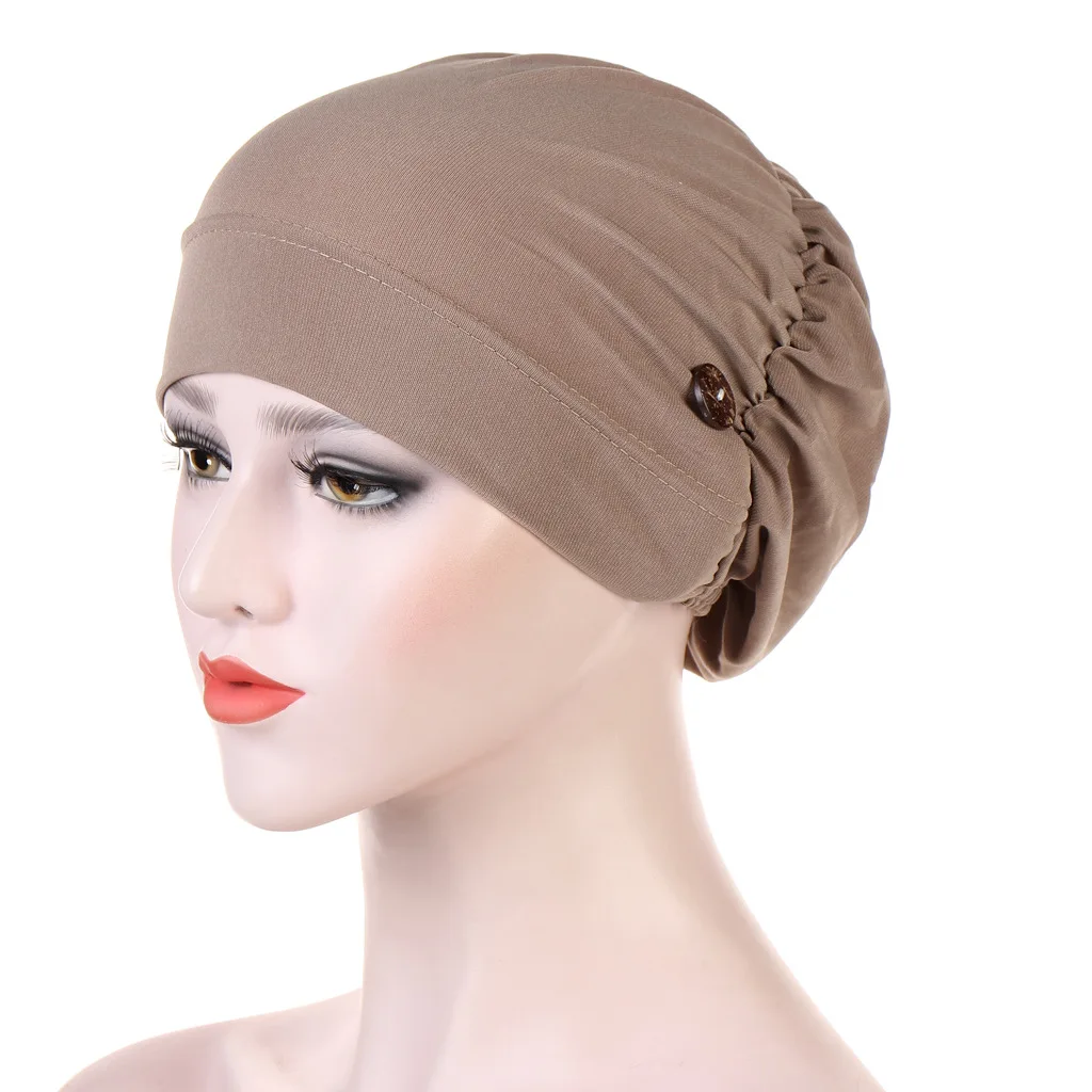 2021 мода мусульманский тюрбан шляпа для женщин на пуговицах сплошного цвета для белье внутренняя шапочки под хиджаб Укутайте голову хиджабы-шарфы капот ready to wear