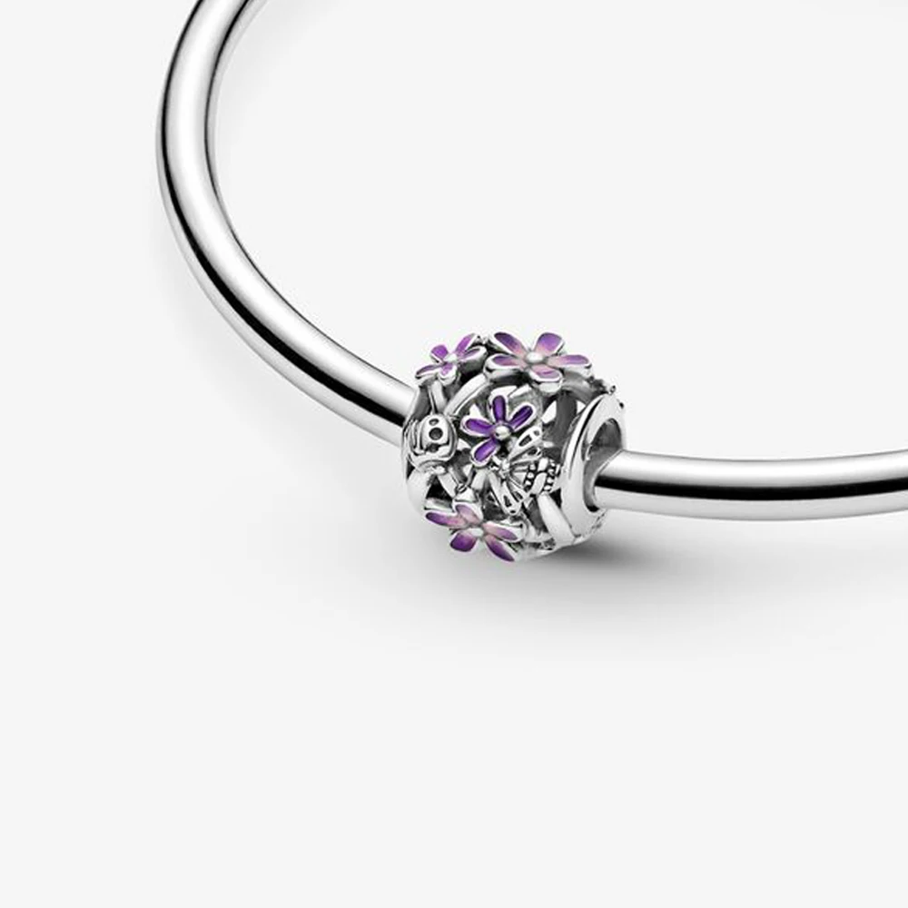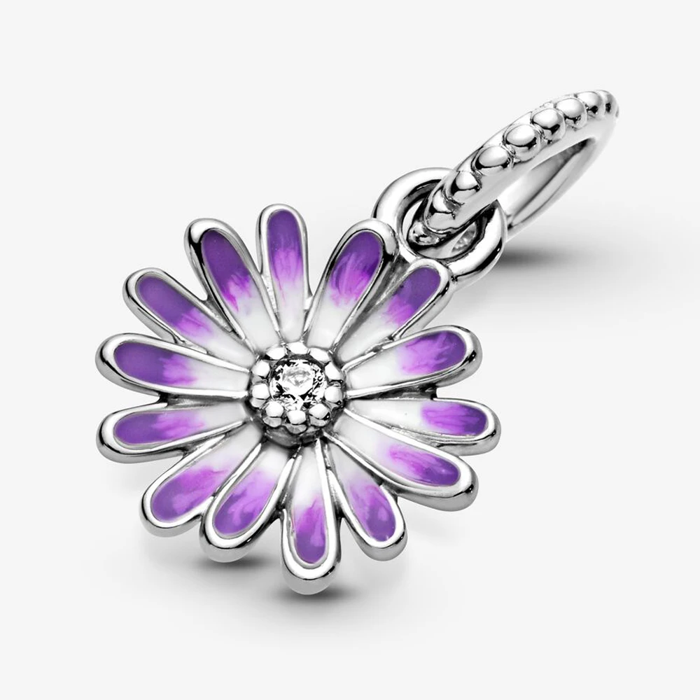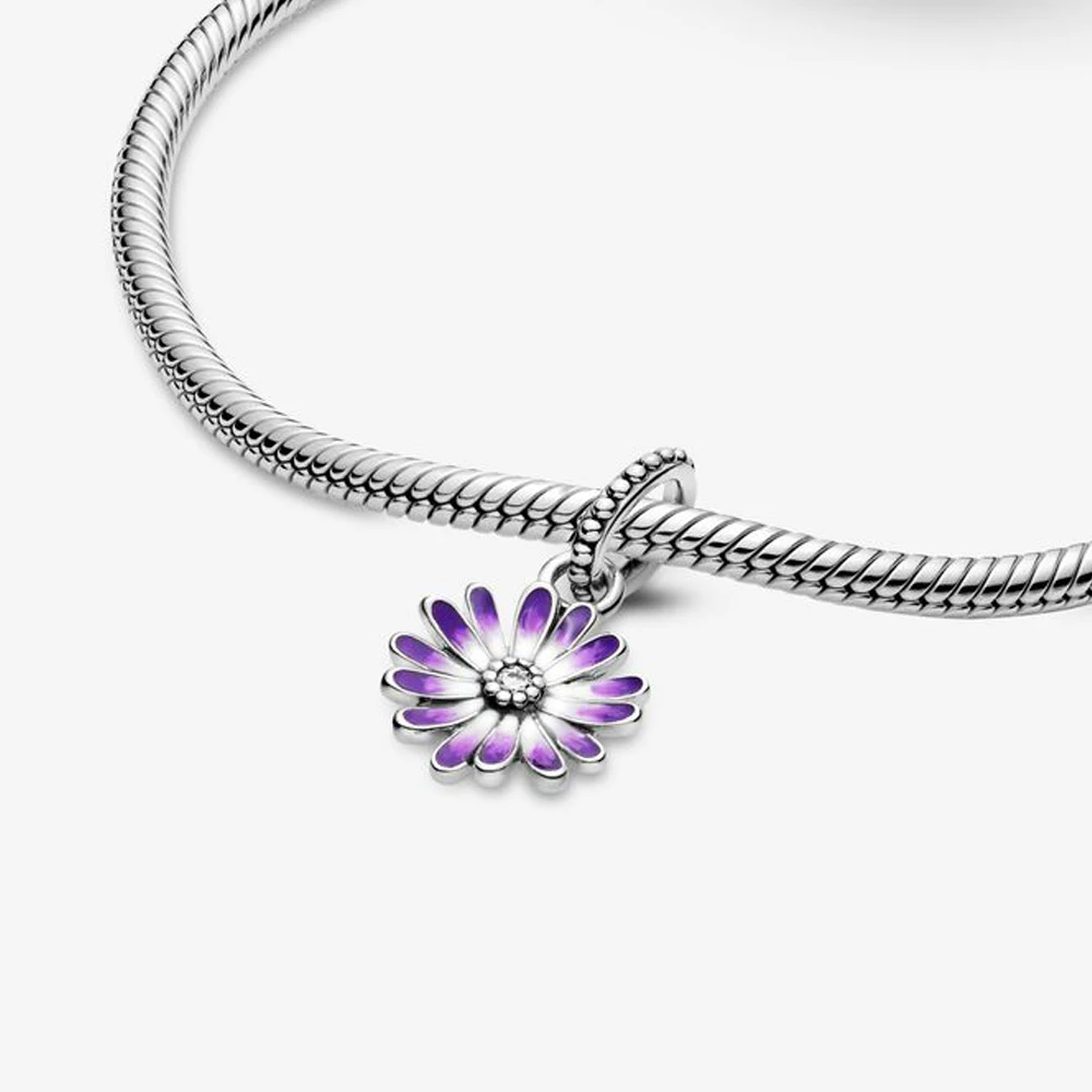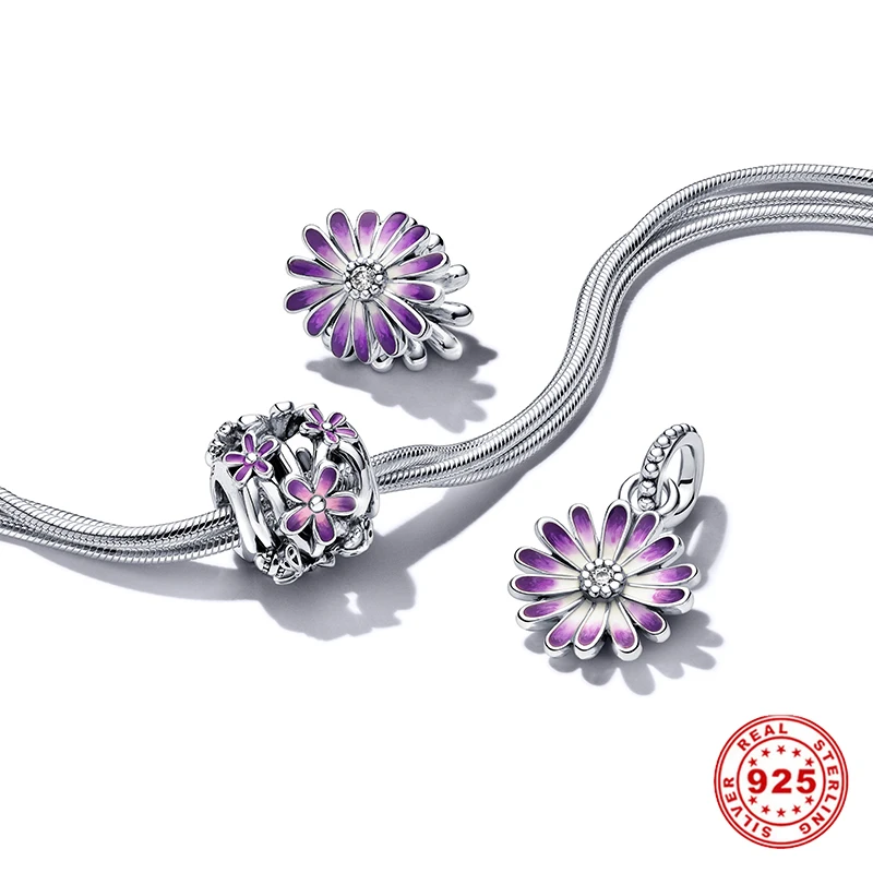 2021 Новый S925 Подвески серебряного цвета оригинальный браслет Пандора фиолетовый сверкающий цветок ромашки Шарм для женщин роскошные украшения