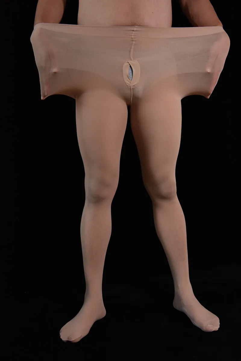 Чулки мужские блестящие с U-образным выпуклым мешочком, пикантные облегающие чулки с открытой промежностью, прозрачные колготки для сценического формирования, размера плюс, теплая одежда Q12