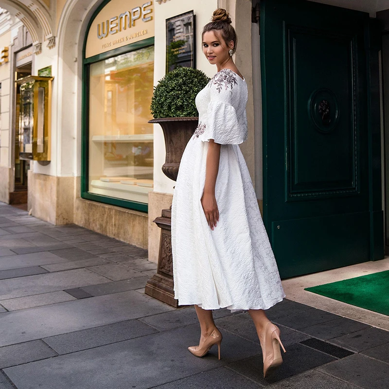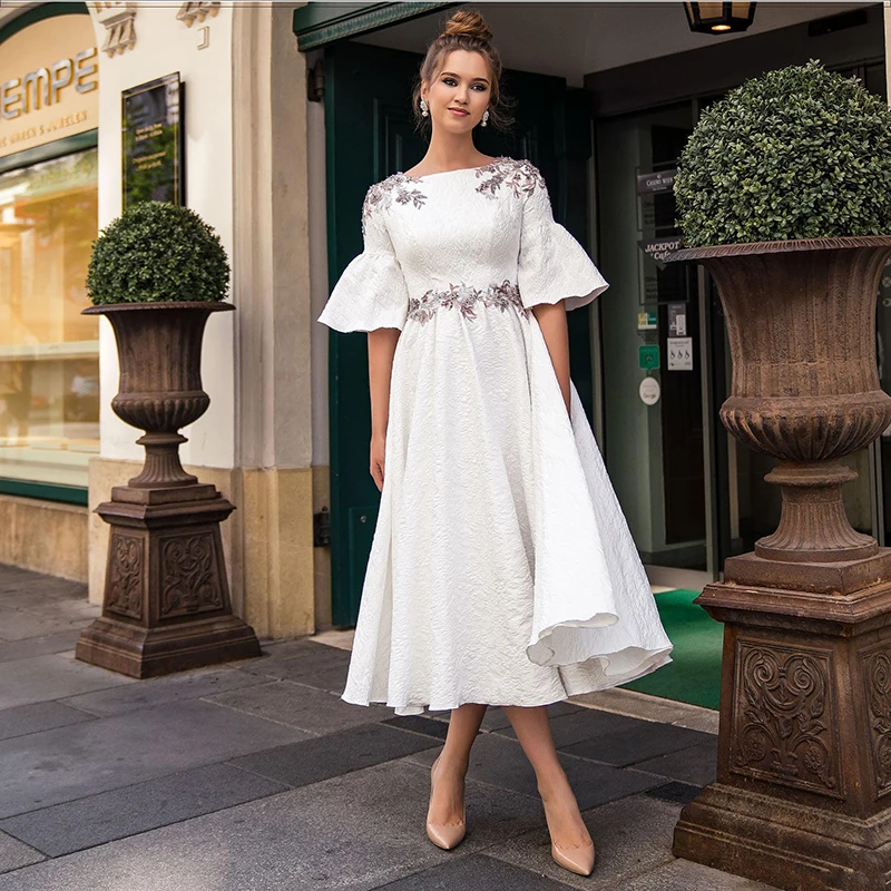 UZN элегантное вечернее атласное платье А-силуэта с глубоким вырезом длиной ниже колена с короткими рукавами из мандарина кружевное платье для выпускного вечера Вечернее платье