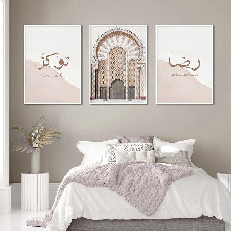 Исламская каллиграфия розово-белая Марокканская дверь плакат Холст ...