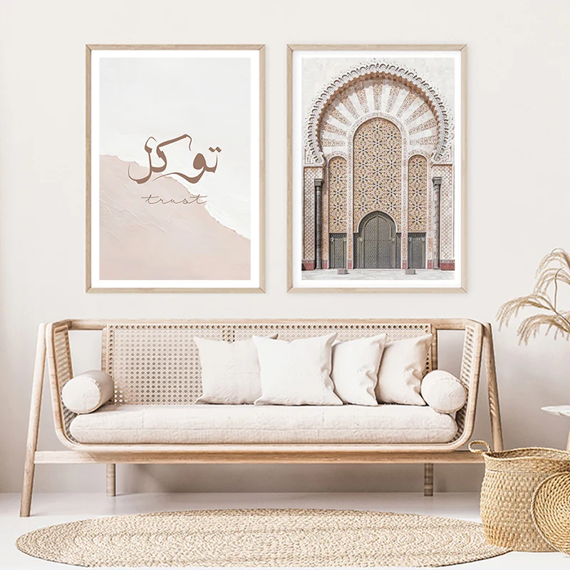Исламский бежевый постер пейзаж холст печать мечеть Марокко дверь н...